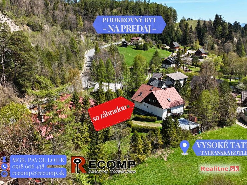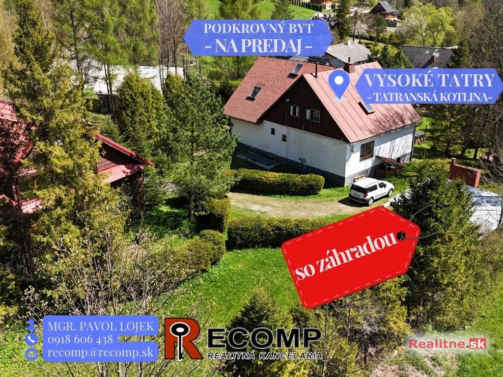 V krásnom prírodnom prostredí Vysokých Tatier - v Tatranskej Kotline ponúkame na predaj priestranný podkrovný byt, ktorý je súčasťou rodinného domu, no má vlastný samostatný vchod so schodišťom, čo zabezpečuje maximálne súkromie a komfort.