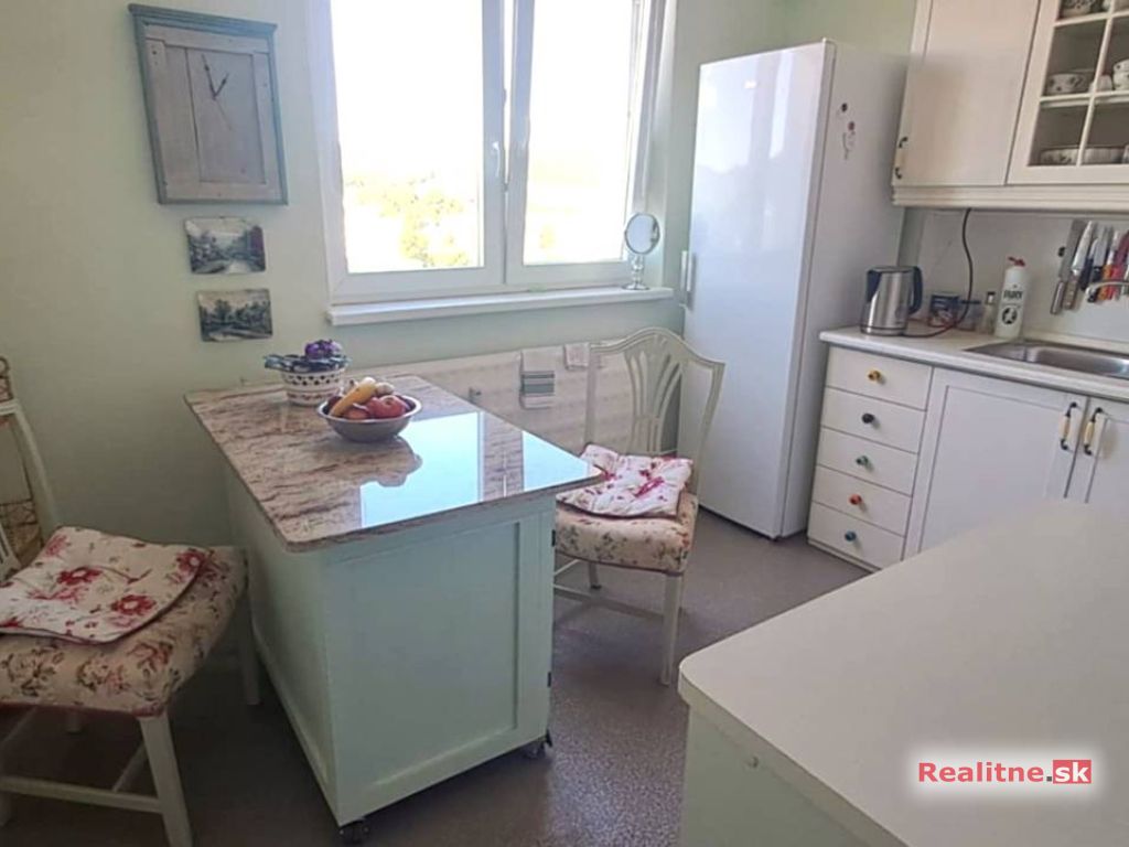 Ponúkame na predaj priestranný a svetlý 3-izbový byt s úžitkovou plochou 76 m², nachádzajúci sa na 6. poschodí v bytovom dome s výťahom, v pokojnej časti mesta Brezová pod Bradlom Základné údaje: Lokalita: Brezová pod Bradlom Poschodie: 6 / Výmera bytu: 76 m² Dispozícia: vstupná chodba, kuchyňa, obývacia izba, 2 spálne, špajza, kúpeľňa so sprchovým kútom, samostatné WC, balkón Technické a stavebné informácie: Bytový dom postavený v roku: 1991 Zateplenie objektu: realizované v roku 2023 Stavebný materiál: syporex Výťah: áno Stav nehnuteľnosti: Kompletná rekonštrukcia bytu: pred 5 rokmi Plastové okná: vymenené v roku 2019 Bezpečnostné vstupné dvere 2x klimatizačná jednotka (v kuchyni a spálni) 2x skriňa (izba a spálňa) Moderná kuchynská linka so zabudovanými spotrebičmi vrátane kávovaru Orientácia a vybavenie: Orientácia bytu: východ – západ Balkón: áno Pivnica / skladový priestor: špajza v rámci bytu Kúrenie: ústredné Možnosť parkovania: verejné parkovanie pri bytovom dome Byt sa nachádza v upravenej a tichej lokalite s kompletnou občianskou vybavenosťou – školy, obchody, služby, MHD. Vďaka vyššiemu poschodiu ponúka príjemný výhľad a dostatok denného svetla počas celého dňa.