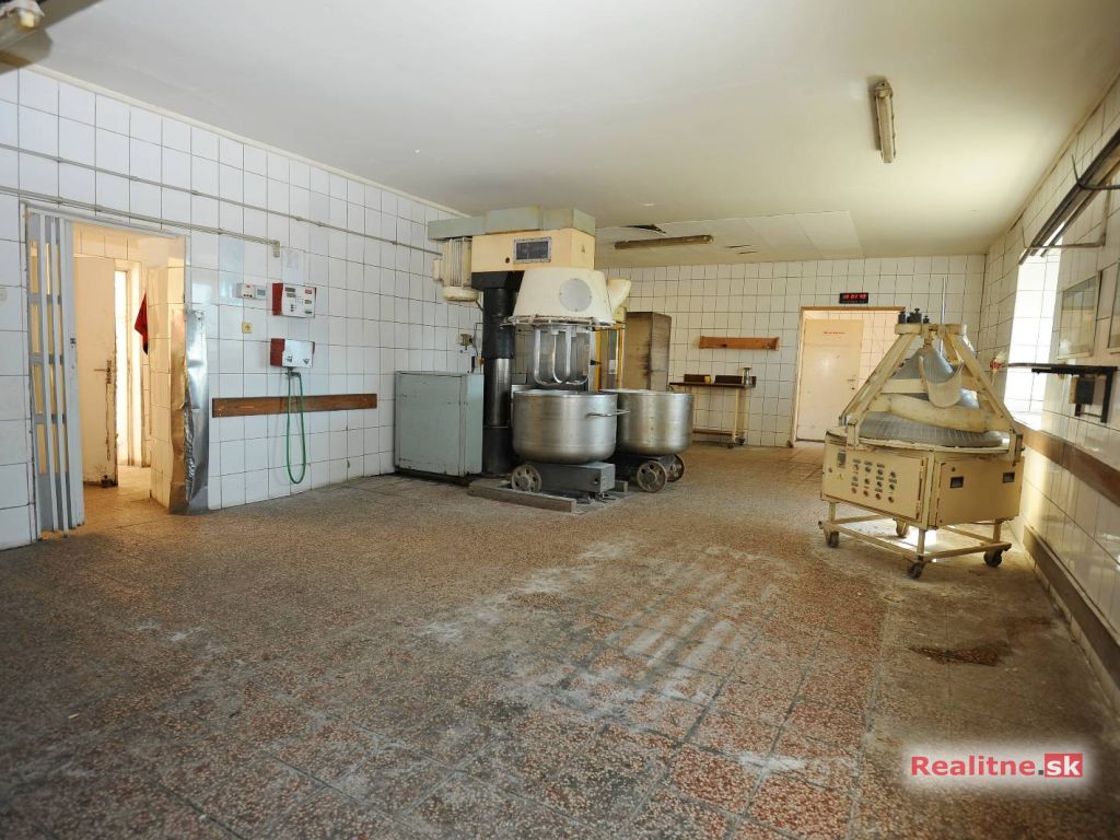 Do budovy pekárne je vstup cez široké dvojkrídlové dvere, cez ktoré sa dostaneme do predsiene s priamym vstupom do výrobnej haly. Vo výrobnej hale sa nachádza prípravovňa a stroje na miesenie cesta, stroj na výrobu rožkov a veľa iných strojov na prípravu pekárenských výrobkov pre konečných užívateľov.