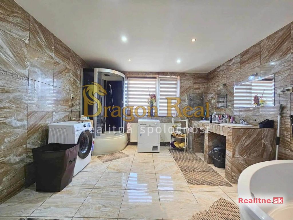 – obrovská kúpeľňa s dvojitým umývadlom, sprchovacím kútom a rohovou vaňou