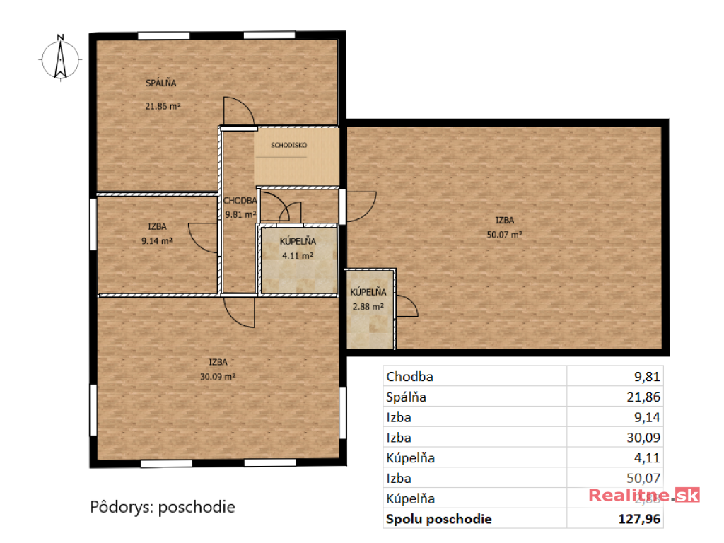 4 spálne na poschodí
